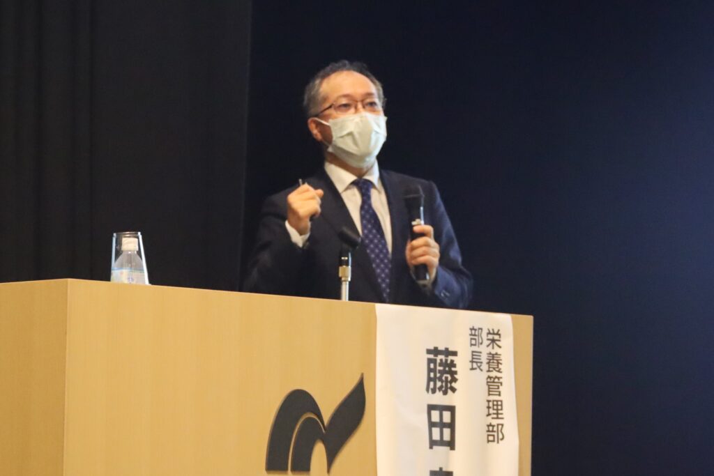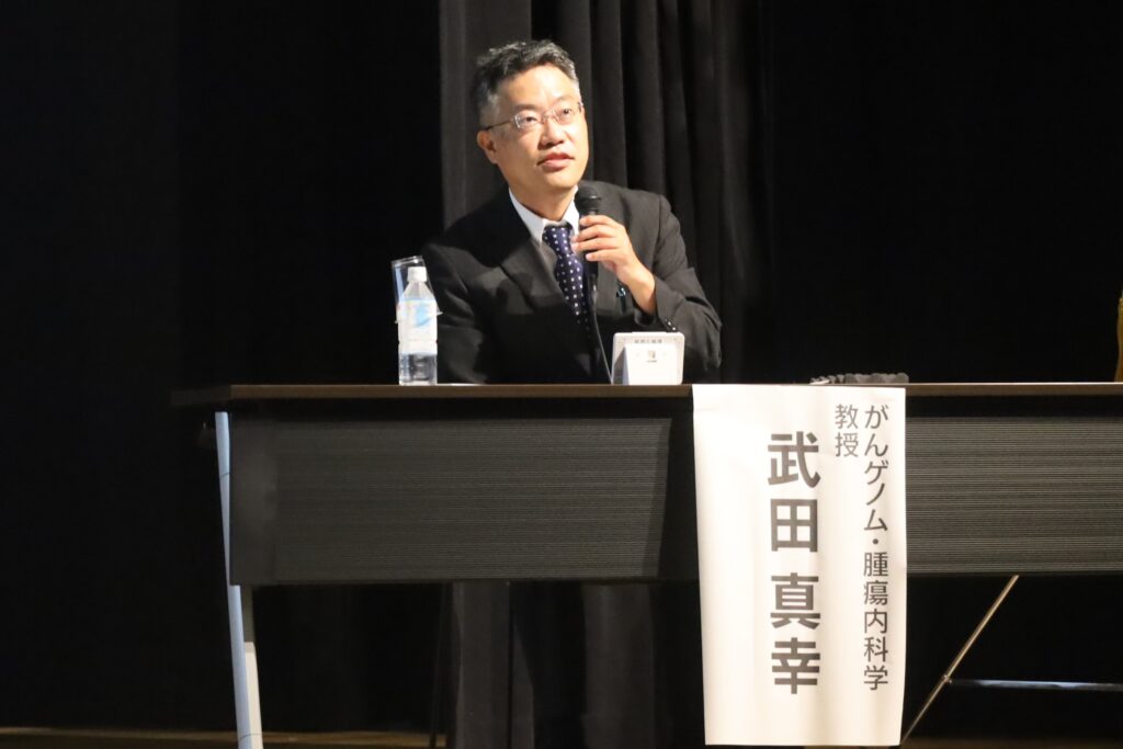 当日は、今年の4月に供用を開始した畝傍山キャンパスで初めて「くらしと医学」を開催し、約210名の方にご参加いただきました。座長は、開学80周年記念及び新キャンパスオープン記念事業実行委員会記念Year部会長の武田真幸教授(がんゲノム・腫瘍内科学)が務め、栄養管理部 藤田幸男部長、血液内科学 久保政之講師と武田真幸教授が講演を行いました。講演中には、参加者から活発な質問があり、盛況のうちに終了しました。